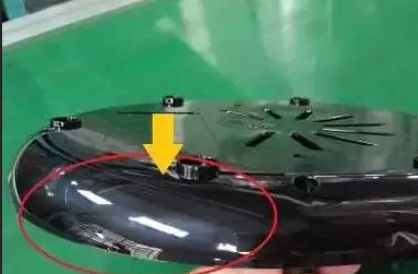 產品表面白霧,從視覺角度來講,它呈現的是白色狀,所以在白色產品時亦不明顯,黑色高光最為明顯,如圖所示,該產品為PP材料生產,周邊表面呈現出大大小小的白色斑紋,像云霧般的癥狀,這里歸類為白霧。