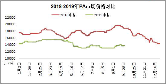 ????????月初,原料MMA走高及國內部分生產企業報盤走高,貿易商后市成本面走高,利潤空間壓縮,加之市場內工程塑料整體呈現一片看漲趨勢,貿易商報盤多有調漲意向。但下游需求仍舊疲弱,市場整體走貨顯緩慢,貿易商操盤謹慎,實盤多有商談空間。中旬,伴隨中秋小長假來臨,下游多剛需接盤為主。后期受沙特原油遭襲事件影響,原油價格暴漲,帶動大宗化工品齊漲,場內看漲情緒濃厚,商家操盤多有謹慎。下旬,原料MMA成本面支撐影響猶在,PMMA生產企業后市報盤多存上調預期。臨近國慶長假,下游終端工廠多無備貨意向,市場交投面疲弱,貿易商走貨遲緩,報盤多有謹慎,實盤或有小幅讓利促成交。
